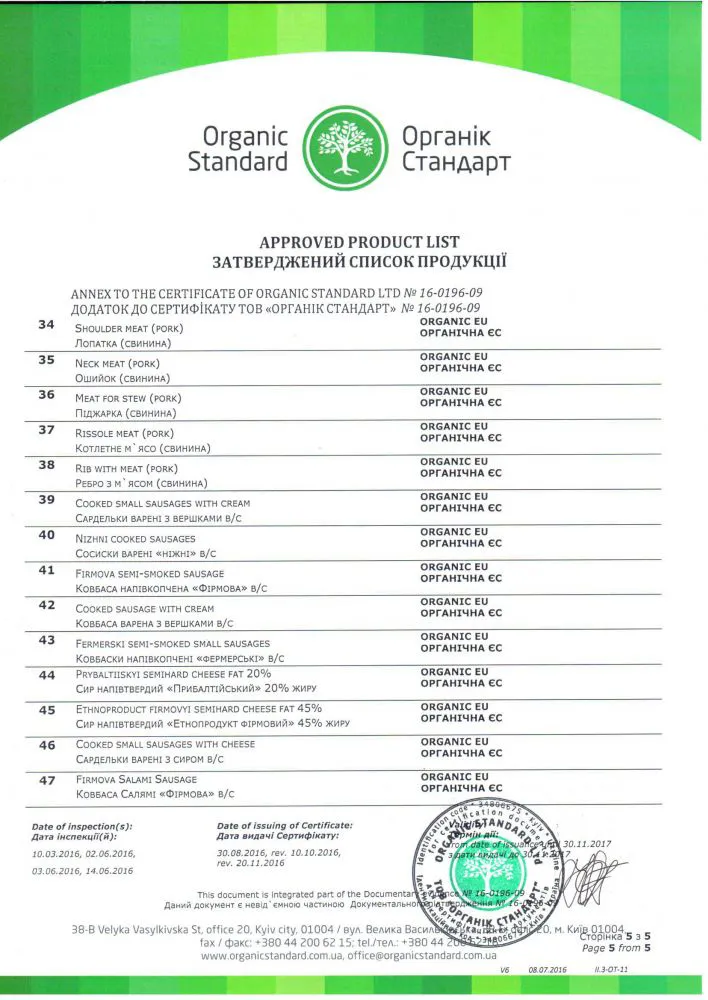 Це означає, що весь процес виробництва продукції, включаючи підготовку полів, насіння, вирощування, збирання, складування, переробку, зберігання, пакування та доставку проходить щорічну інспекцію та процедуру підтвердження сертифіката.